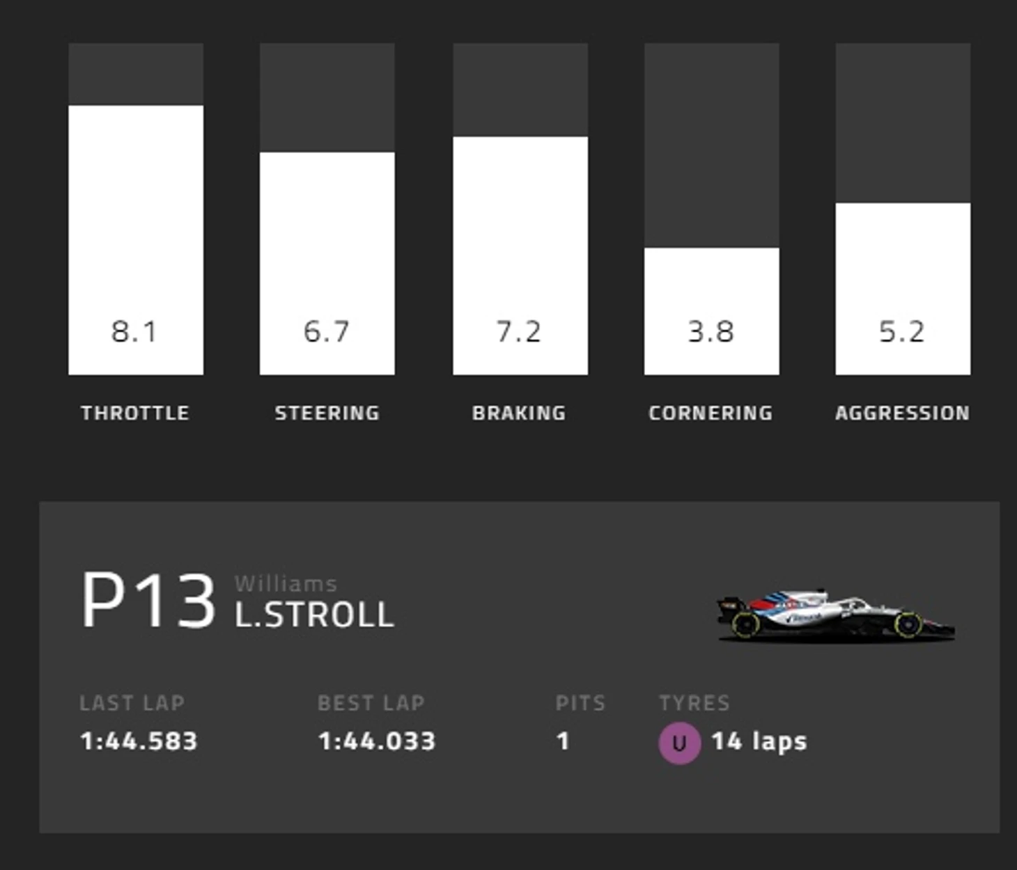 По результатам оценки данных телеметрии пилотов с гонки по «Яс-Марине» россиянин Сергей Сироткин во второй раз в двух последних Гран-при показал лучший результат по части работы рулем. Москвич набрал 8,2 балла.