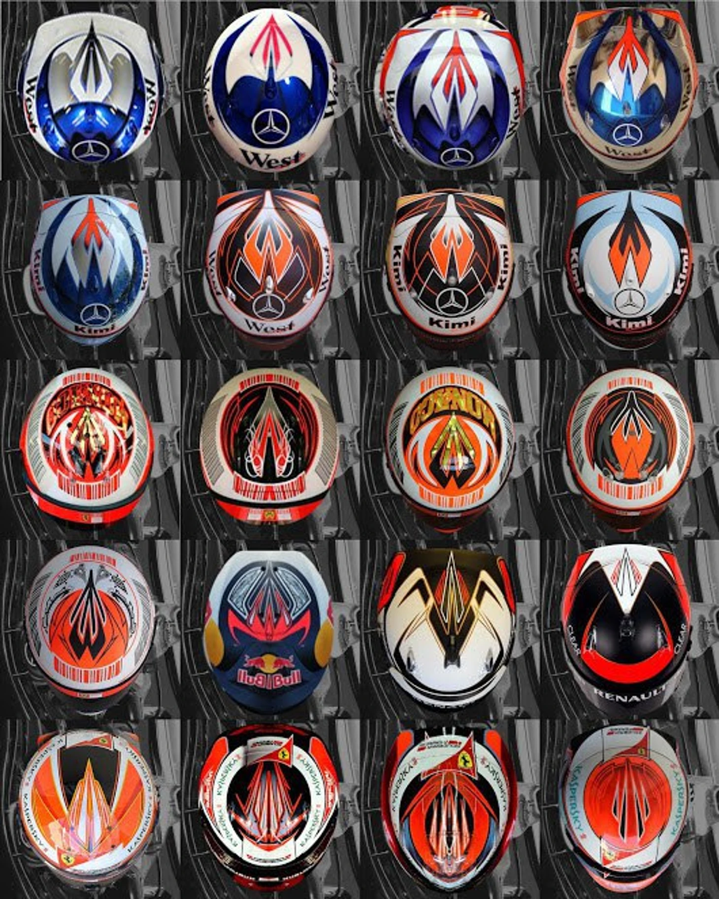 Финский гонщик «Заубера» Кими Райкконен больше десятилетия гоняет в «Формуле-1» с необычным V-образным символом. Как бы ни менялся дизайн шлемов, буква оставалась неизменной — менялась лишь ее стилистика.
