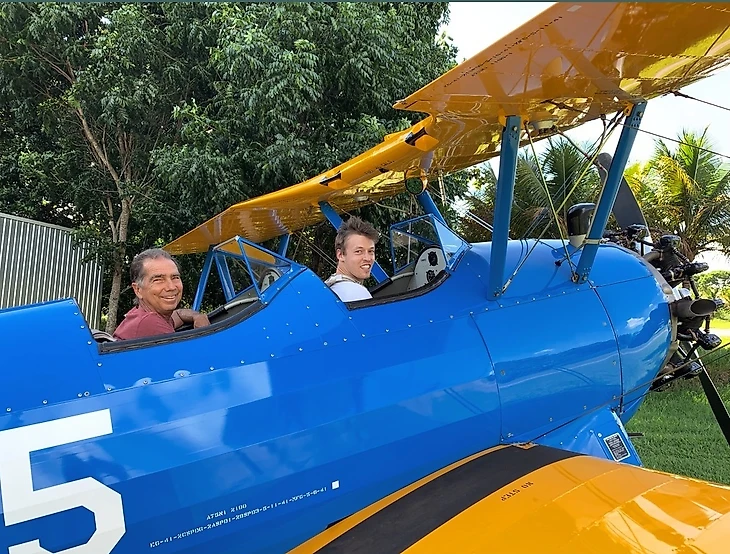 Девушка российского гонщика «Торо Россо» Даниила Квята Келли Пике выложила в инстаграм, как уфимец учится летать на биплане, похожем на американский самолет 30-х годов.