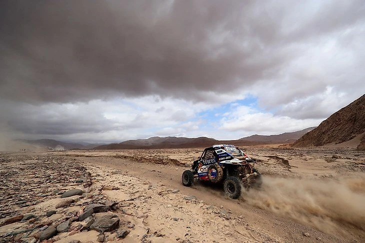 В классе side by side же оказалось слишком много сильных экипажей, и гонка за победу оказалась невероятно напряженной. Все ехали примерно одном темпе, из-за чего отрывы на каждом этапе и в общем зачете постоянно оставались минимальными, а лидер за первую половину рейда поменялся пять раз. После четвертого этапа первым оказался и екатеринбуржец Сергей Карякин, да и в целом он держался в топ-5 до конца шестого этапа, претендуя на подиум. Но «Дакар» все-таки не зря называют марафоном на выживание: аварии регулярно вносят коррективы таблицу, и на класс мотовездеходов инциденты повлияли больше, чем на остальные зачеты.