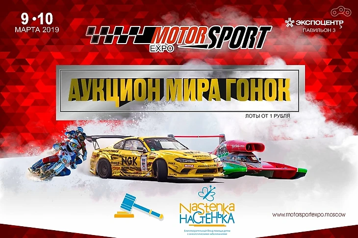 На сцене выставки пройдет аукцион гоночных лотов от ведущих команд и лучших спортсменов России.