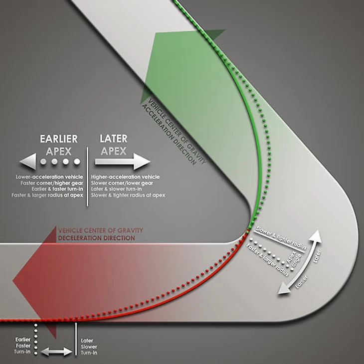 Что это такое: Точка траектории, ближайшая к внутреннему краю дороги в повороте. Ее называют «вершиной поворота», поскольку именно в этом моменте гонщикам обычно рекомендуют начинать разгон. Прохождение через эту точку теоретически позволяет достигнуть максимальной скорости на выходе из поворота.