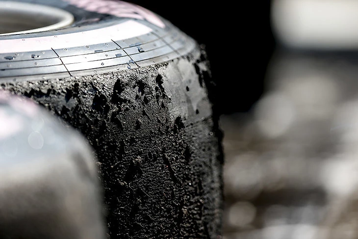 Что это такое: Все происходит прямо как в пункте про «проплешину» – пилот блокирует передние тормоза, одно из колес прекращает вращаться и скользит в продольном направлении по асфальту. В таком случае часть шины не только стирается об асфальт: при торможении с очень больших скоростей на резину продолжает действовать сила вращения, так что хорошо разогретая покрышка как бы «расплющивается», немного меняя форму на чуть более «квадратную». Такая шина уже не может эффективно обрабатывать скорость машины, и потому ее обычно сразу же меняют на пит-стопе.