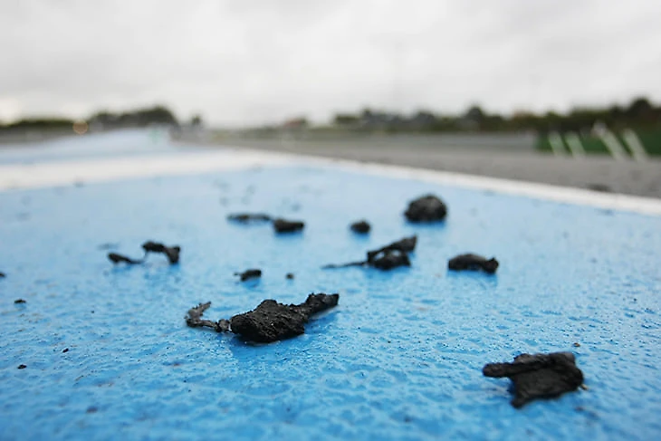 Что это такое: Маленькие кусочки резины, отрывающиеся от шин во время прохождения поворотов и скапливающиеся за пределами гоночных траекторий. Наезд на них в середине гонки часто опасен, потому как они мешают покрышке полностью соприкасаться с дорожным полотном, тем самым снижая сцепление. С другой стороны, гонщики часто едут по ним на круге почета после финиша ради «сбора» их на покрышки, чтобы добавить машине немного веса, точно уложиться в лимиты и пройти все необходимые проверки в закрытом парке.