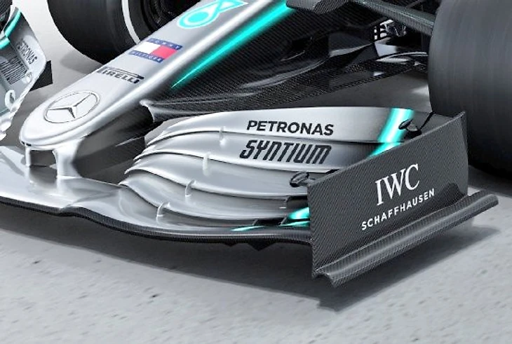 В нем даже камеры и термальные датчики расположили с целью более эффективного распределения воздушных потоков. И здесь уже заметно еще одно уникальное решение – «Мерседес» первым в пелотоне применил в антикрыле изогнутую боковую пластину. Скорее всего, конкуренты ее тоже моментально скопируют.
