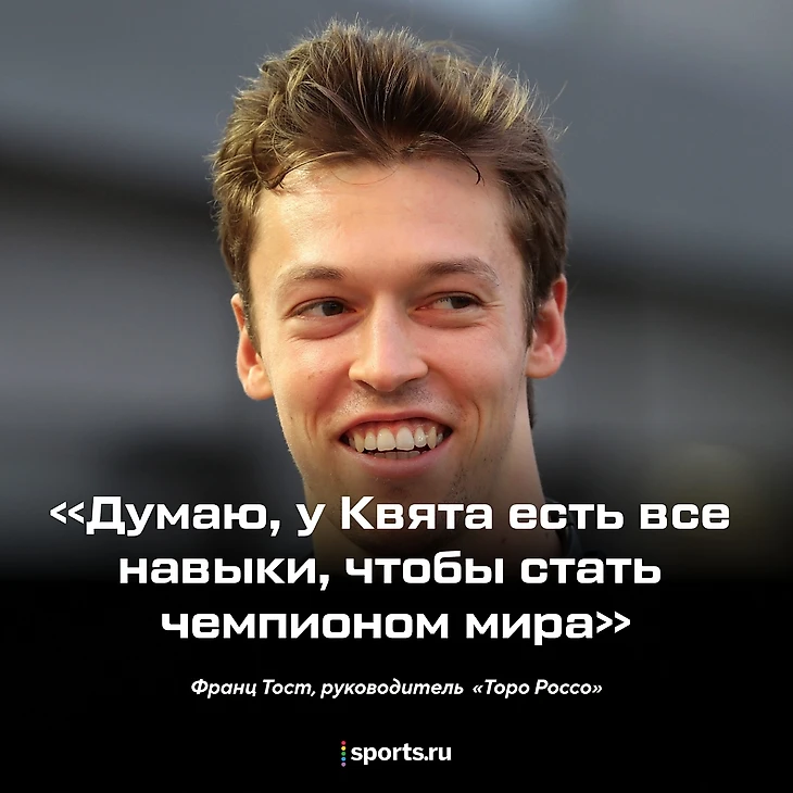 «Он невероятно умелый пилот и отличается невероятной трудовой дисциплиной, всегда выкладывается до конца, идет ли речь о пилотировании на трассе или работе с инженерами, – оценил Квята по совместному сезону Тост. – У меня нет сомнений в его успешном будущем. Рано или поздно он точно станет звездой российского спорта. Являясь новичком, Даниил проделал отличную работу и в свой первый же год в «Формуле-1» продемонстрировал то, что является очень быстрым пилотом, у которого есть потенциал стать одним из лучших гонщиков в чемпионате. Сильная мотивация учиться и добиваться успеха, сосредоточенность на том, чтобы добиться прогресса по ходу сезона, великолепный талант и бойцовский дух дали Квяту шанс очень быстро пойти на повышение и перейти в «Ред Булл».