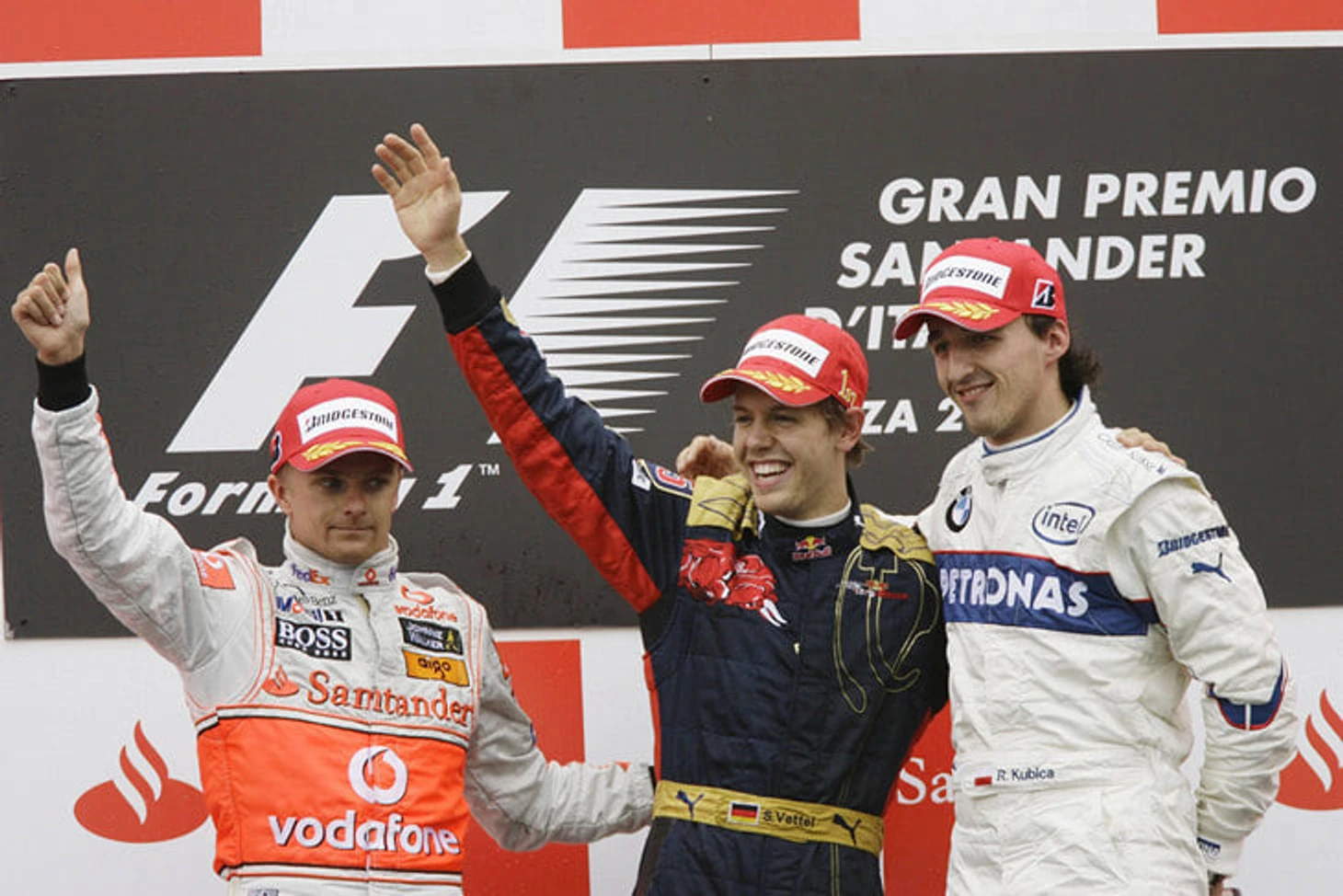 Но тот день хорошо запомнит не только нынешний лидер «Феррари», но двое других молодых гонщика: на тот подиум в Монце вместе с немцем поднялись Хекки Ковалайнен и Роберт Кубица. Средний возраст пилотов из топ-3 составил рекордные 23 года, 11 месяцев и 6 дней.