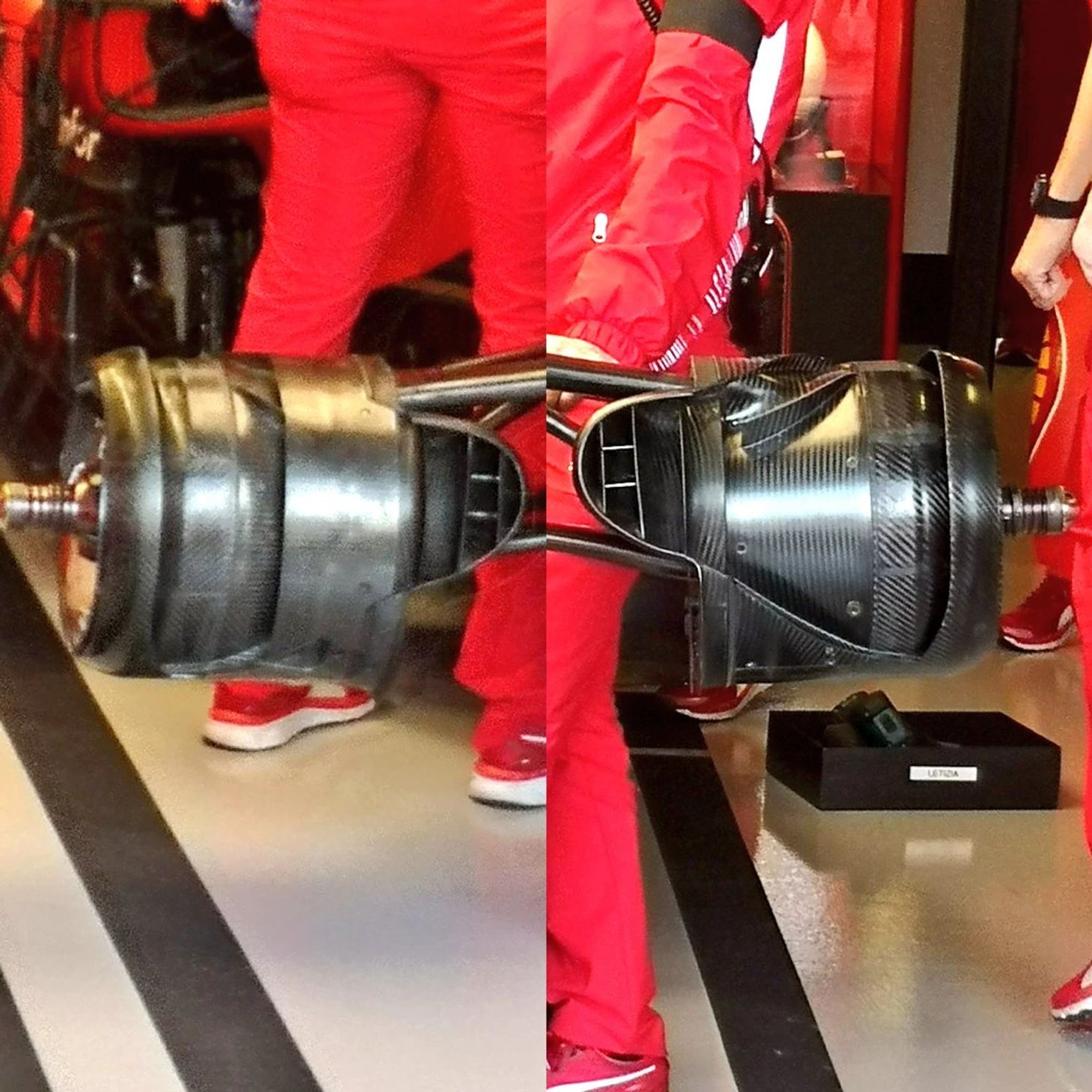 Как видим, Скудерия учла характер автодрома Мельбурна и большое количество правых поворотов (соответственно, большую нагрузку на правую сторону машины) и установила разные диски и системы охлаждения на тормоза разных колес — правое получило значительное усиление. Больше до такого пока никто не додумался.