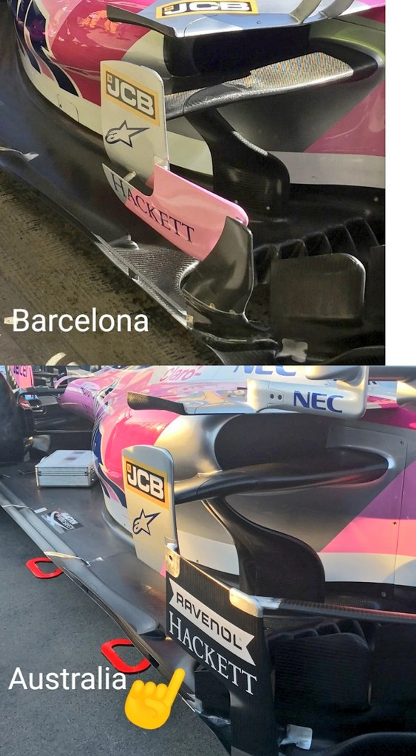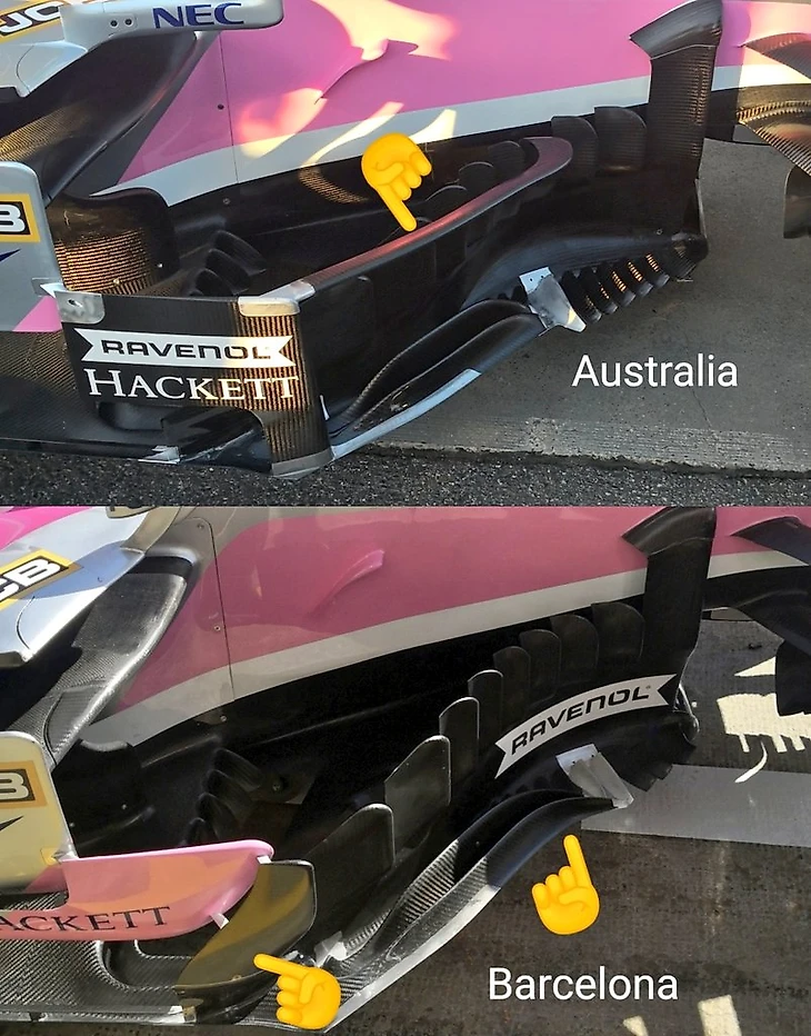 А еще команда Стролла и Переса нашла серую зону в регламенте и добавила рассекатели не на воздуховод тормозов, а не много ниже.