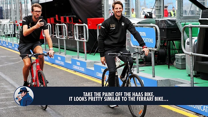 Официальный твиттер-аккаунт «Ред Булл» выложил фото Ромена Грожана из «Хааса» на велосипеде в цветах ливреи своей команды и подписал ее словами «Сотрите краску с вела «Хааса» – он выглядит слишком похожим на вел «Феррари».