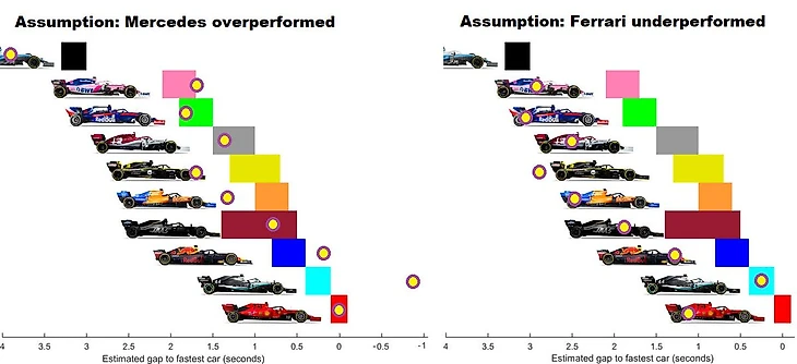 Перед стартом сезона 2019 года профессор прикладной математики Эндрю Филлипс собрал и рассчитал в своем блоге все данные с тестов, выведя рейтинг гоночного темпа всех команд «Формулы-1». В соответствии с ним лидерами оказались «Феррари» и «Мерседес» (причем «красные» были на 0,15-0,3 секунды с круга впереди «серебряных»). Также ученый рассчитал и примерное «окном» отставания соперников от лидера в квалификации.