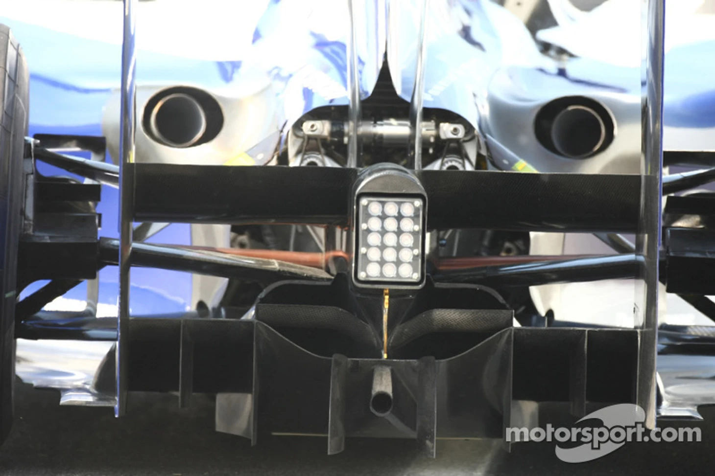 «Уильямс» использует двойной диффузор. Как вы можете видеть на картинке, средняя часть диффузора больше, чем внешние части. Кроме того, в верхней центральной части диффузора есть два отверстия в форме ромба, прямо под задним сигнальным фонарем. Эти части диффузора «Уильямс» предназначены для направления воздуха из верхней части болида и нижней в эти отверстия и большую центральную секцию для повышения эффективности диффузора. Предполагается, что воздух, поступающий из верхней части болида, увеличивает скорость воздуха, проходящего под болидом, понижая давление воздуха и создавая дополнительную прижимную силу. Протестующие команды утверждали, что общая высота центральной секции превышает 175 мм от контрольной планки, разрешенной в правилах.