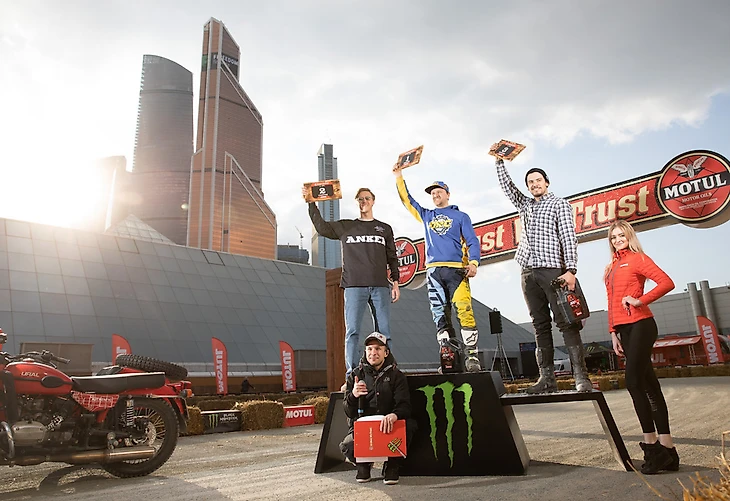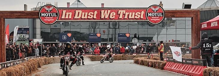 Впервые в России прошел флэт-трек Motul In Dust We Trust — самая демократичная гонка, где участники проходят все повороты в скольжении на гранитной крошке. Шестьдесят три спортсмена в восьми классах боролись за победу в новом для них формате — это позволило уравнять шансы каждого. Кстати, самому молодому участнику класса Junior было всего 7 лет, а самому опытному райдеру — 54 года. Райдеры выступали на самой различной технике: от скутеров до профессионально подготовленных мотоциклов класса «Супермото».