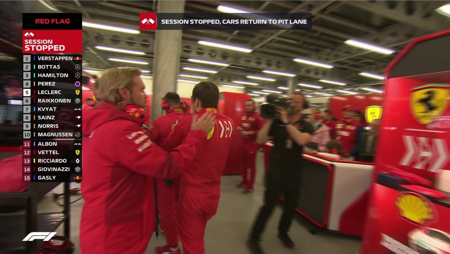 17:07 Машину Леклера увозят, из нее вытекают технологические жидкости. Повреждения весьма серьезные. Как бы не пришлось стартовать с пит-лейна. Сам Шарль уже в боксах, его пытаются утешить, но он очень расстроен.