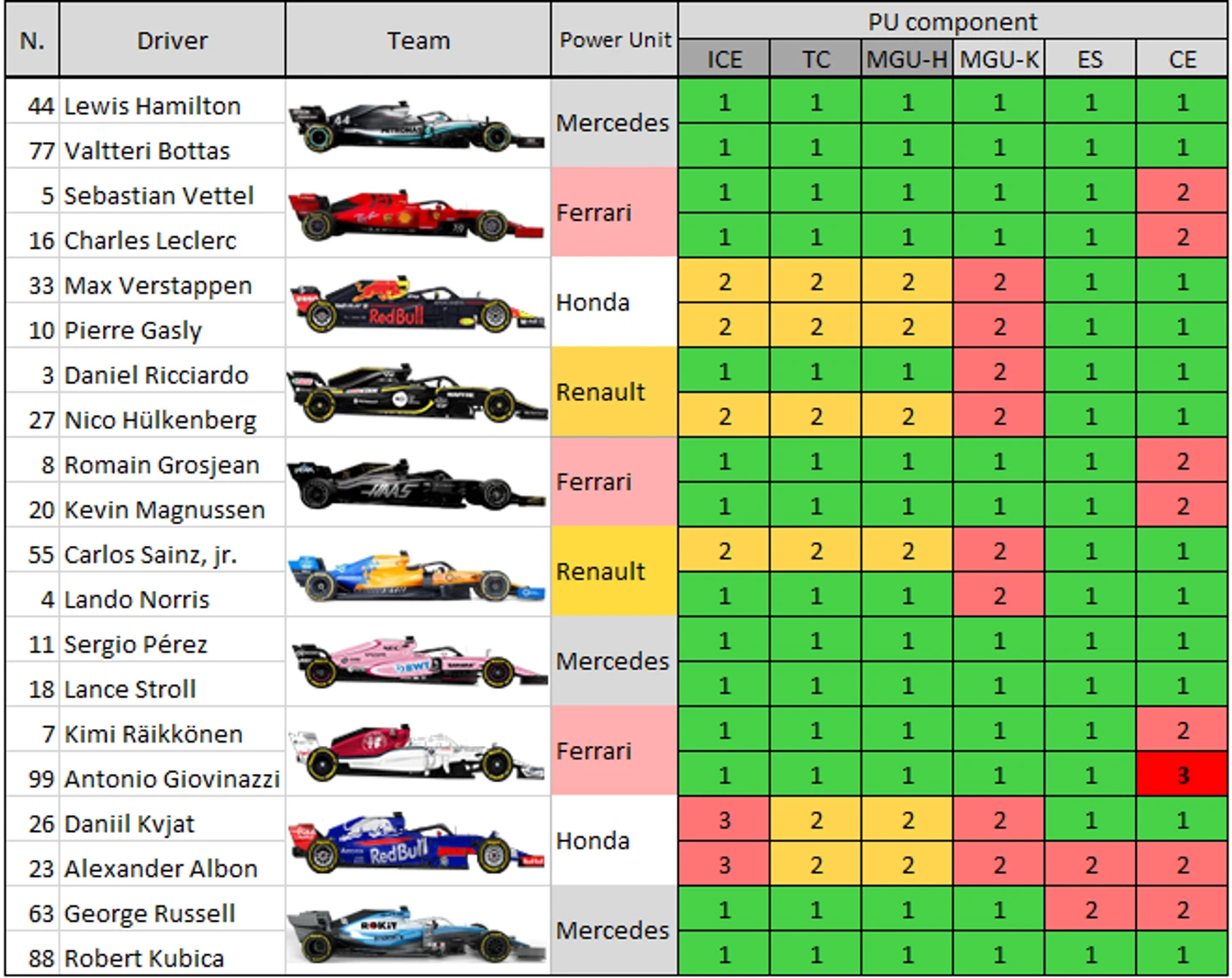 15:43 Сезон только начался, а у некоторых уже не особо радостная ситуация с компонентами силовой установки. Вот такая она перед Гран-при Азербайджана. У парней из «Торо Россо» установлены уже третьи по счету двигатели внутреннего сгорания.