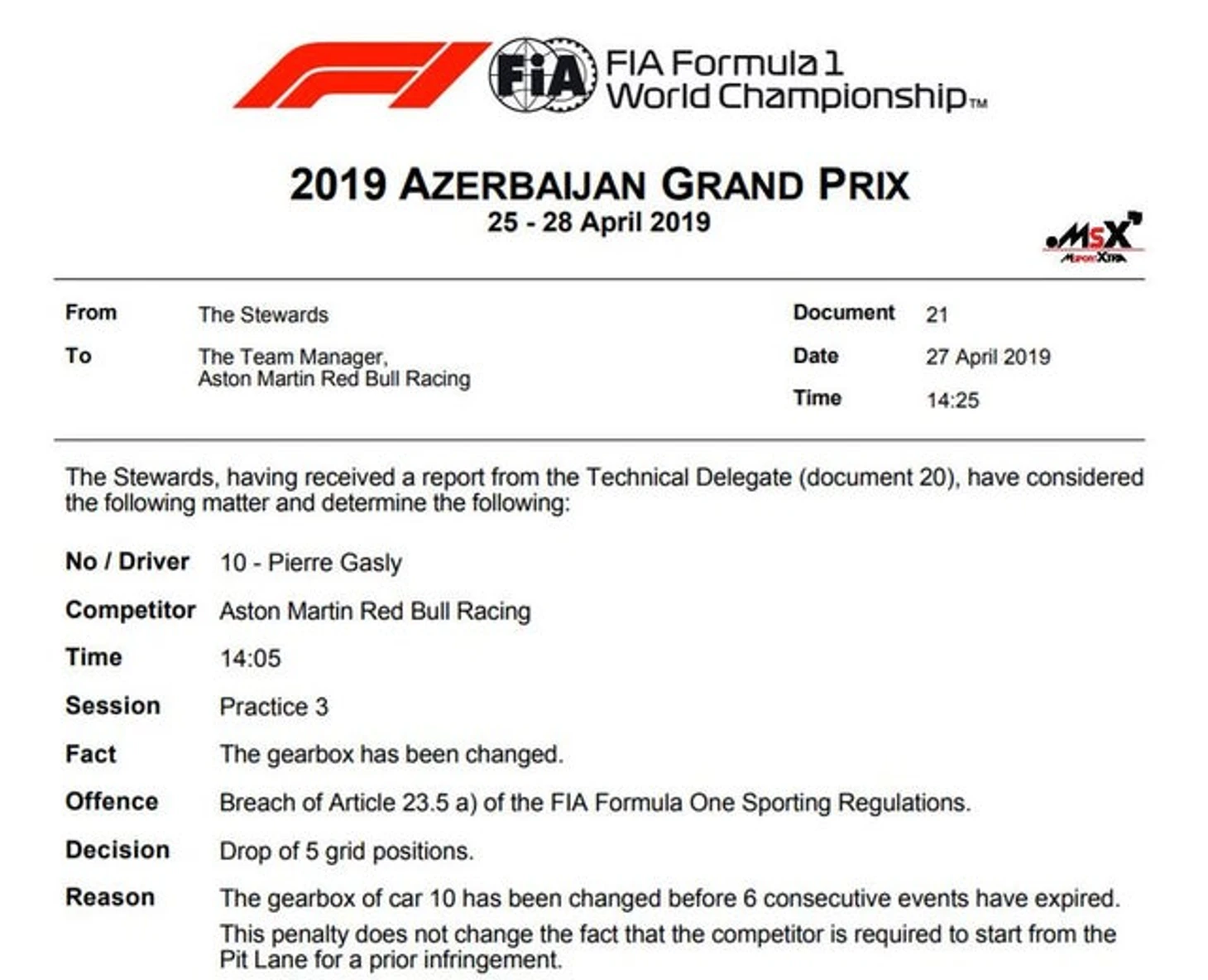 Ну а в «Ред Булл» решили извлечь максимум и поменять Пьеру коробку передач. Еще плюс пять позиций штрафа, но дальше пит-лейн стартовать все равно нельзя. А то пришлось бы стартовать из пригорода.