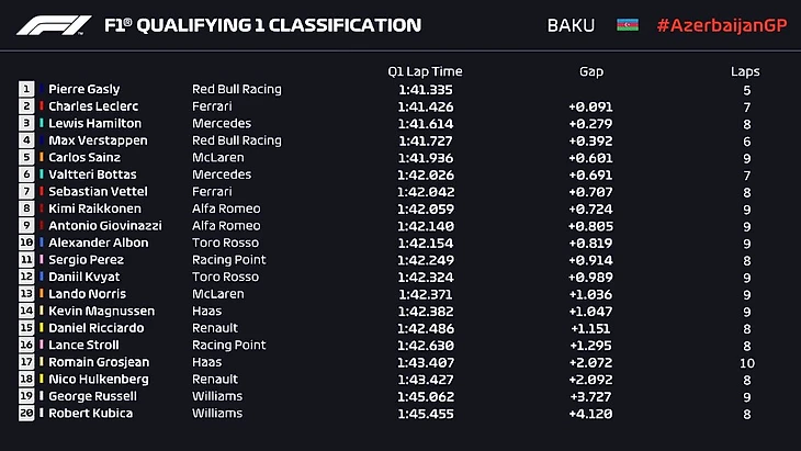 Q1 завершен. Вылетели Стролл, Грожан, Хюлькенберг, Расселл и Кубица. Риккардо все же сумел прибавить в самом конце и выбраться на спасительную 15-ю строчку.