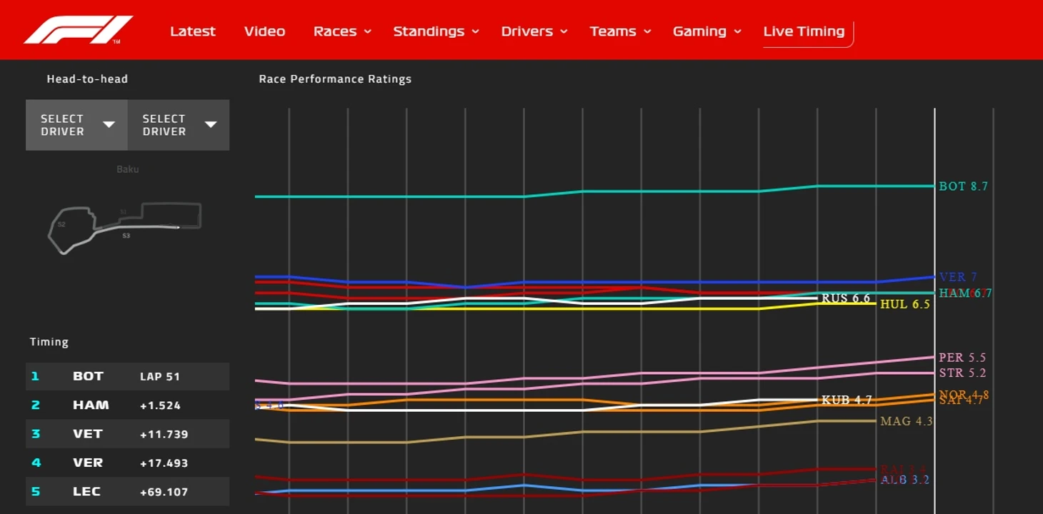 На официальном сайте «Формулы-1» в разделе лайвтайминга на странице «выступлений» появились оценки пилотам за Гран-при Азербайджана, основанные на данных телеметрии.
