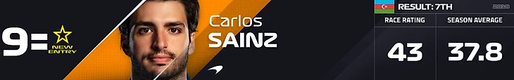 Судя по видимым оценкам, эксперты «Формулы-1» признали лучшим гонщиком Гран-при Азербайджана Валттери Боттаса и Серхио Переса. Вторым стал Макс Ферстаппен, а третьими — Льюис Хэмилтон и Карлос Сайнс.