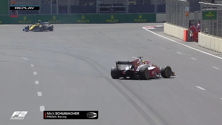 На седьмом круге гонки многие лидеры (включая Шумахера) отправились на обязательный пит-стоп. В отличие от гонки в Бахрейне, где тактика команды “Према” немного подвела немца, в Баку Мик не потерял позиций после волны пит-стопов. Он шел на шестом месте (и должен был переместится на пятое после остановки Татьяны Кальдерон), но допустил досадную ошибку и развернул свой болид поперек трассы.