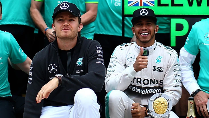 2014: получив в свое распоряжение чемпионскую машину, борьба перешла на новый уровень, и в субботу Росберг уже оказался сильнее 12:7, но в гонках, как правило, отсиживался на 2 месте и лишь четырежды опередил британца, когда как тот 10 раз оказывался выше в протоколе. Как вы помните, Льюис тогда стал чемпионом, набрав 384 очка против 317 у Нико. Вынося за скобки двойные очки за Абу-Даби Хэмильтон набрал на 42 очка больше (359:317)
