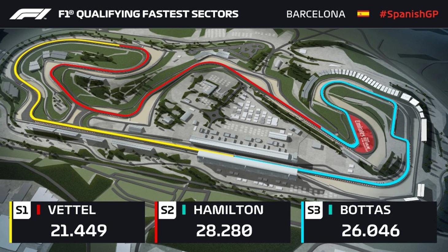 Боттас – второй, Феттель – третий, с отставанием от Боттаса в 0,4 секунды. Леклер допустил грубую ошибку и проиграл Льюису 1,4 секунды.