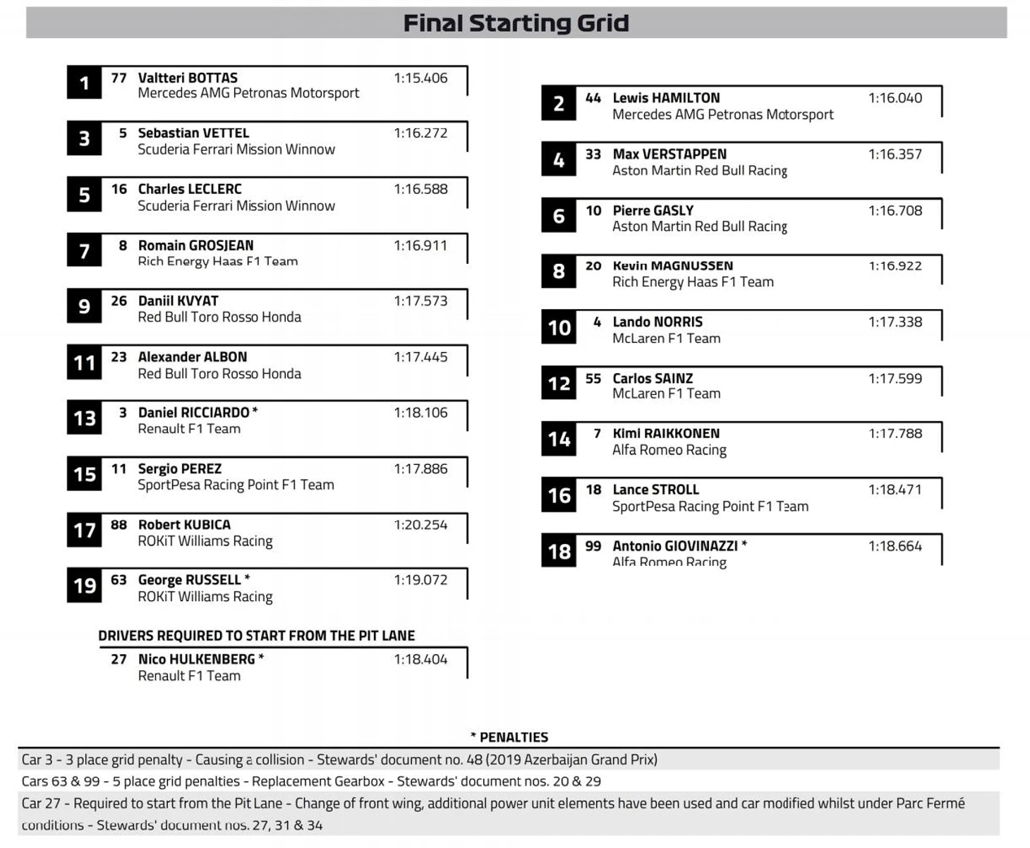 16:10 Гонщики уехали на прогревочный круг. До старта пара минут. Райкконен, Стролл, Кубица, Расселл и Хюлькенберг начнут гонку на «медиуме». Все остальные стартуют на «софте».