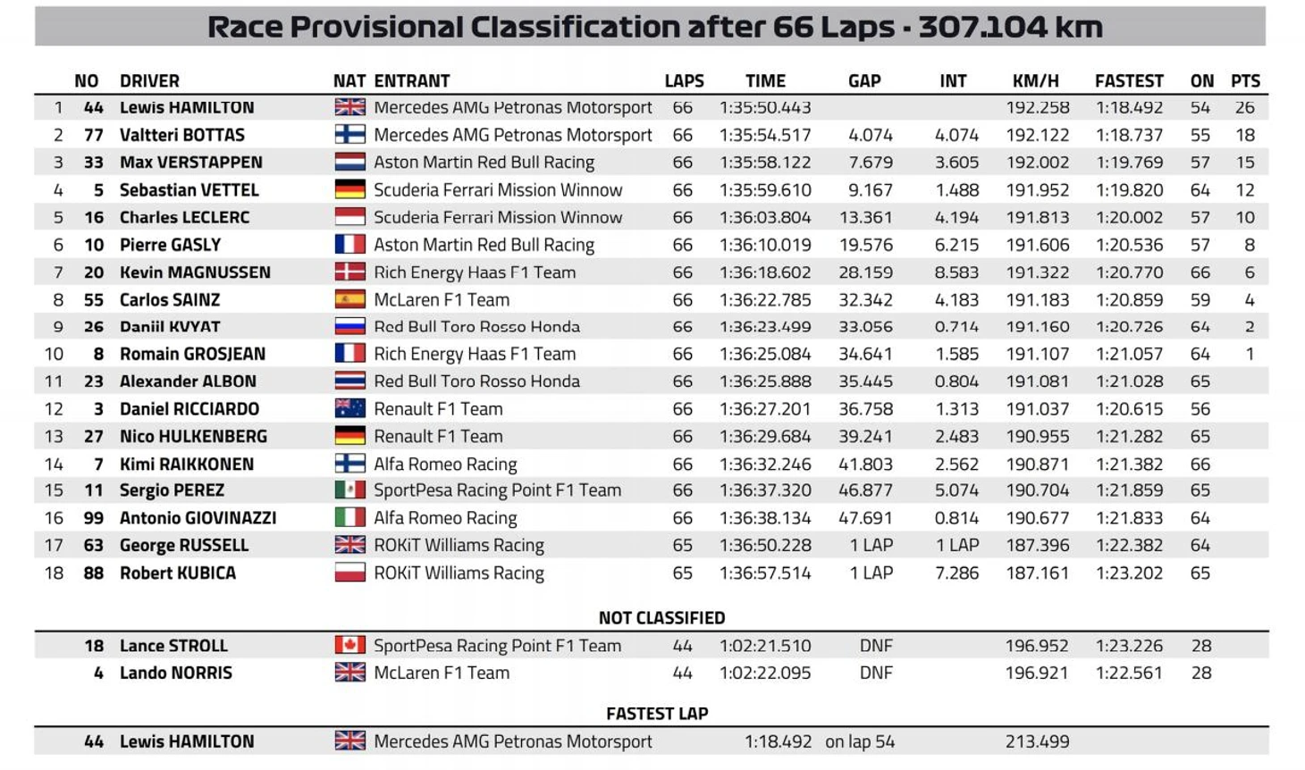 Мы провели пит-стоп, и на рестарте я просто старался удержать нормальную температуру в шинах, чтобы потом постараться проехать самый быстрый круг в гонке. Ведь в этом сезоне мне еще не удавалось показать лучшее время в гонке», – рассказал Хэмилтон.