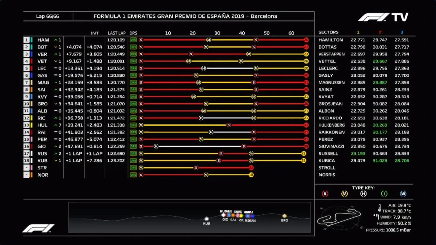 В результате гонщик «Торо Россо» набрал два очка и догнал в личном зачете напарника Александра Албона. Помимо пополненного счета Даниил увез из Испании негласный титул короля обгонов — никто больше не совершил столько же боевых атак в борьбе за позицию (правда, титул «гонщика дня» уплыл Максу Ферстаппену).