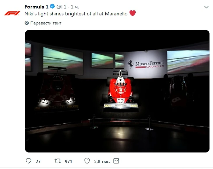 Трогательней всех Ники Лауду помянули в Музее «Феррари» в Маранелло. Без лишних слов и похвал