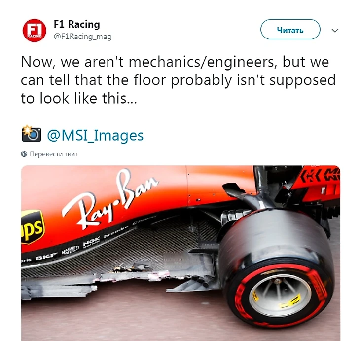 «Сегодня было очень сложно. Мне пришлось рисковать с самого старта, но затем гонка превратилась в катастрофу. Не такого результата я хотел в Монако, – грустно резюмировал после финиша Леклер. – Мы потеряли большую часть днища. Думаю, инженеры этого не увидели, потому что проблемы были с правой стороны, а они смотрели на левую. Но правой стороны днища просто не было. Дальше оставаться на трассе было невозможно. Мы потеряли 80 процентов всей прижимной силы. Продолжать дальше было просто невозможно. Машину уничтожило».