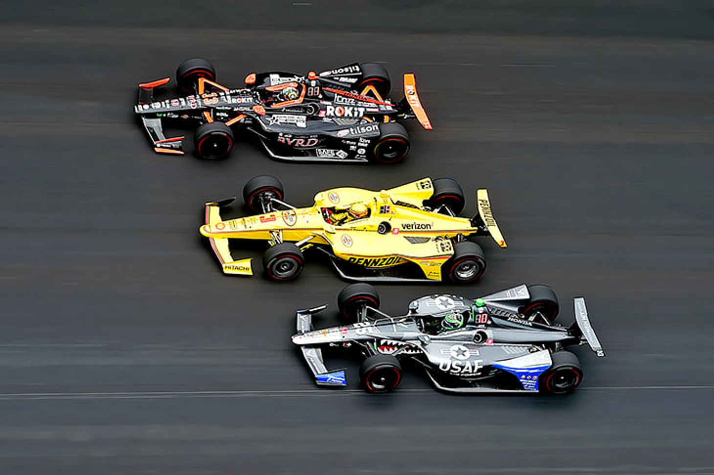 500 миль Индианаполиса. Пажено выиграл гонку, Росси – второй, Сато – третий