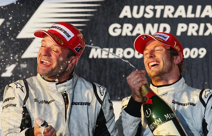 2009: как оказалось, зря. Задумка японского инженера Хонды о двойном диффузоре стала решающим фактором доминирования в начале сезона новой команды, которая называлась по фамилии своего владельца - Росса Брауна, что, будучи еще техническим директором Хонды, убедил концерн продать ему команду за 1$. Браун стала самой успешной командой в истории, взяв оба титула в единственный год своего существования. Что касается гонщиков, то их шансы перед Австралией могли быть вполне равными на титул, но Баттон уверенно брал поулы и выигрывал гонки, а вот Рубенс в самый нужный момент своей карьеры спасовал. Дженс стал чемпионом с 95 очками, а Баррикелло со своими 77 уступил еще и Себастьяну Феттелю. В квалификациях бразилец вновь выиграл 10:7, но в гонках уступал в 11 случаях из 15.