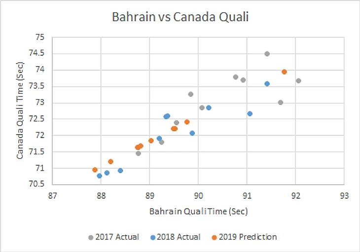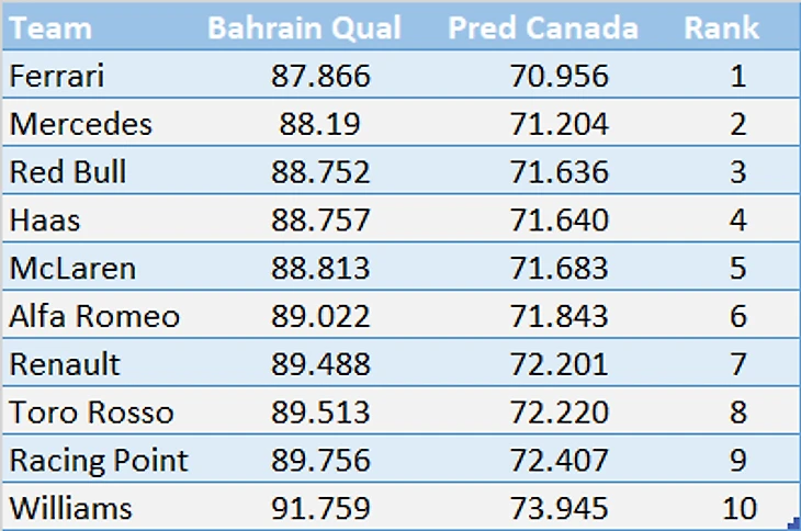 Выяснилось, что результаты квалификации к Гран-при Бахрейна фактически отражают будущую расстановку на Гран-при Канады с точностью в 78 процентов.