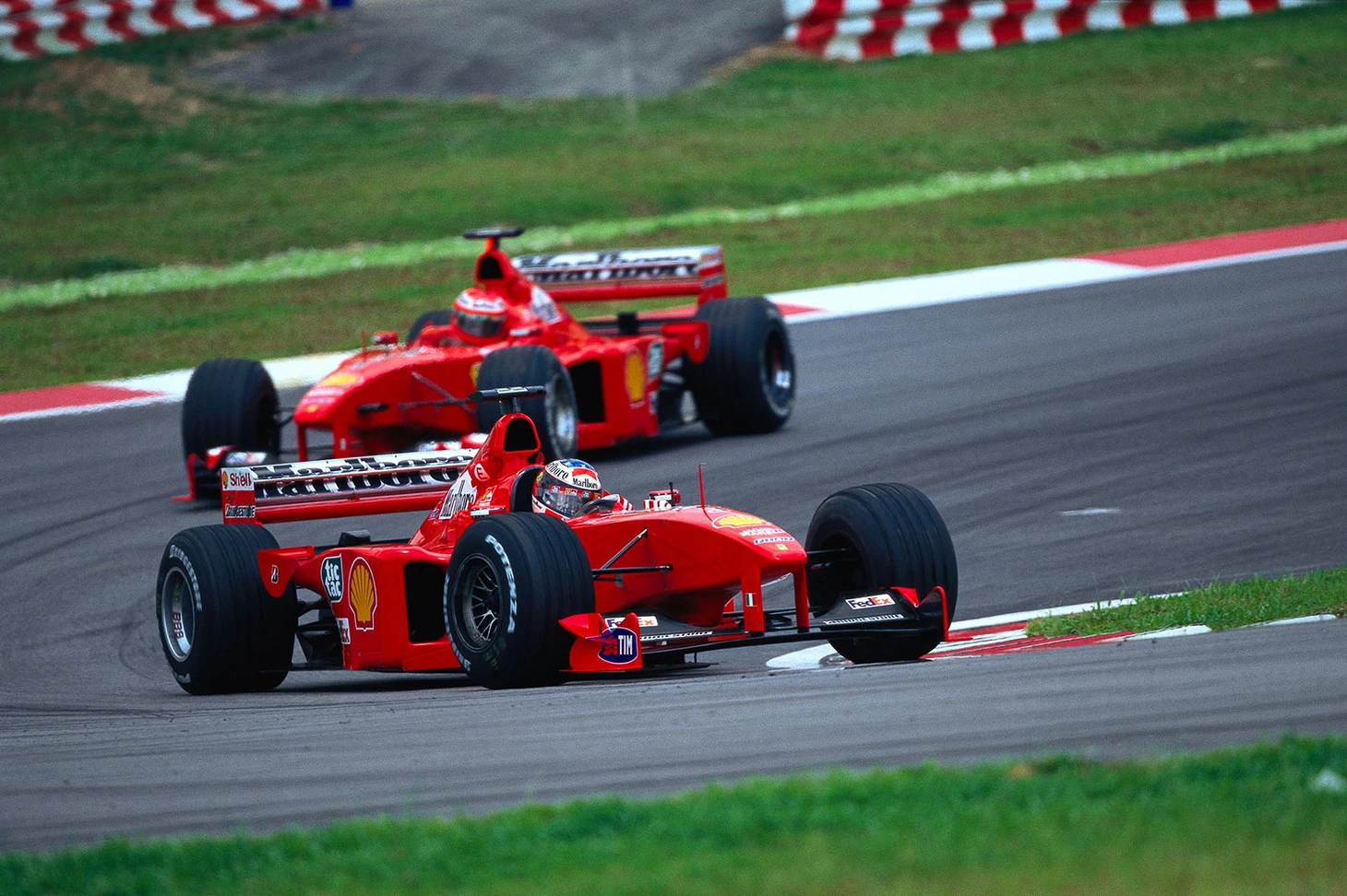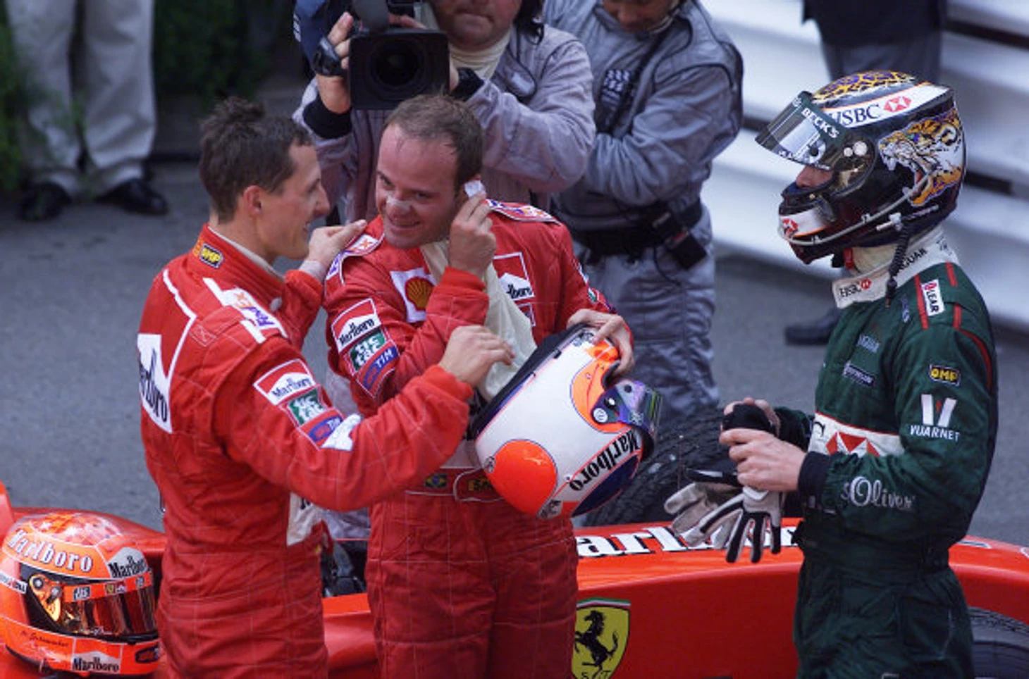 2000: в те самые дни, пока Херберт и Ирвайн пытались всячески попасть в топ-6, Рубенс пытался стать одним из орудий Скудерии в сражении с МакЛареном. У него это слабо получилось в первом году выступлений: Шуми стал, наконец, чемпионом, а бразилец уступил и Култхарду, и Хаккинену в личном зачете. Квалификационные «будни» в XXI веке Михаэля мало чем отличались от прошлых лет: 15:2 по субботам в пользу чемпиона. В гонках с двойным финишем, коих было девять, Баррикелло также был не страшен - лишь один обгон против восьми. По очкам бразилец проиграл со счетом 62:108.