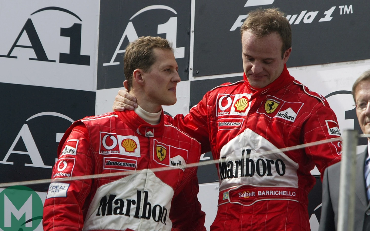 2002: из рук вон плохо начал тот чемпионат будущий вице-чемпион. Поговаривали даже об уходе бразильца из Феррари, но удачный уик-энд в Австрии и подписанный в то же время контракт в совокупности с ужасающим приказом пропустить Михаэля, якобы с кем-то борющегося за титул, на линии финиша перевернули картину. В конце сезона уже немец-пятикратный чемпион будет помогать своему второму Санчо Панса. Рубенс тогда выиграет уже 4 квалификации из 17 этапов, четырежды окажется впереди напарника в 12 гонках с обоюдным финишем и наберет 77 очков, что, правда, на 67 меньше, чем у Шуми...