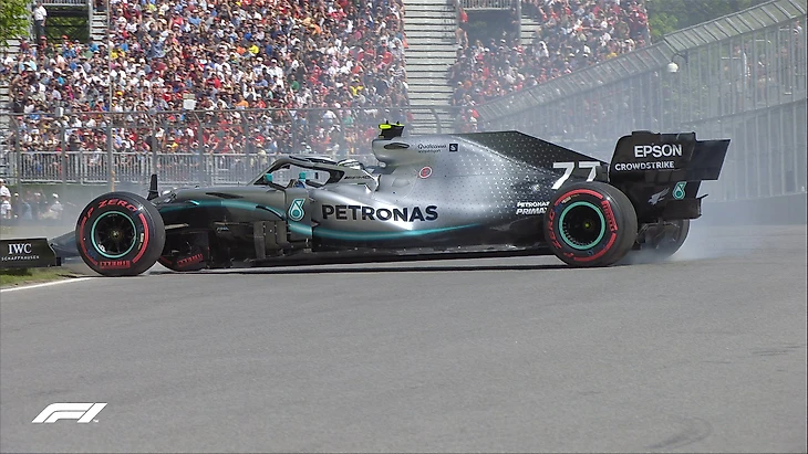 Боттаса на первом секторе занесло, он проехал боком по трассе и чуть не задел стену! Ух!