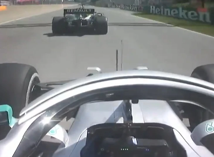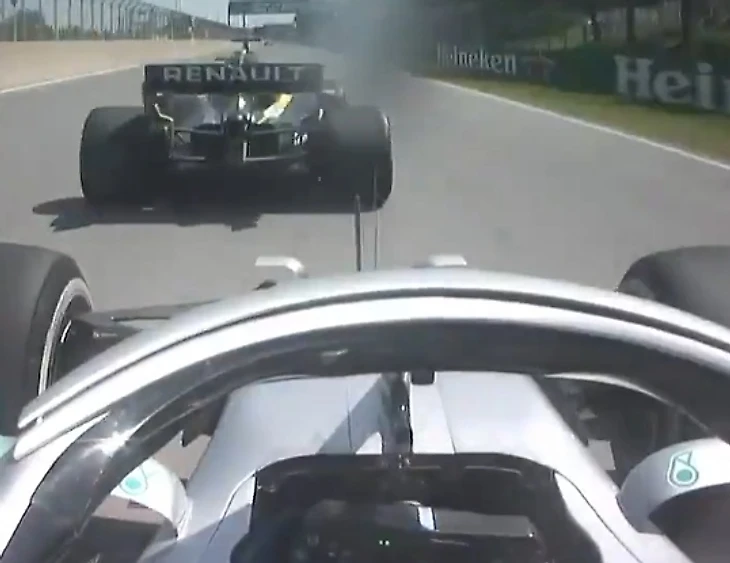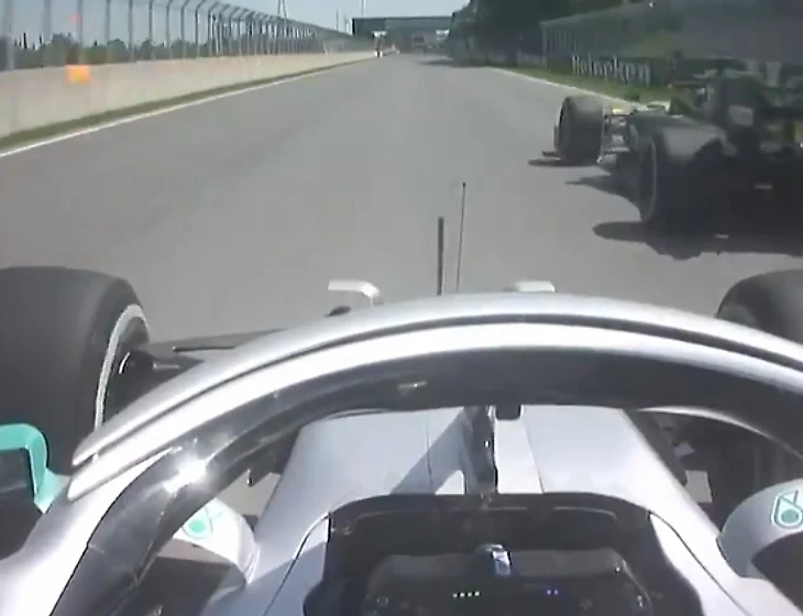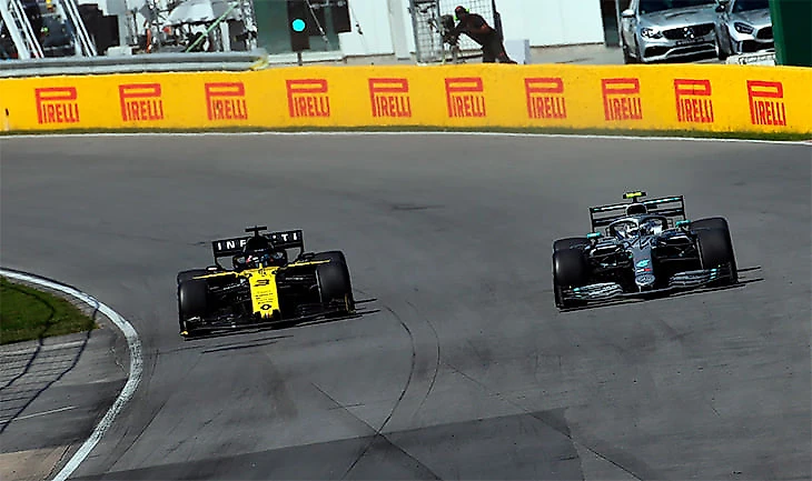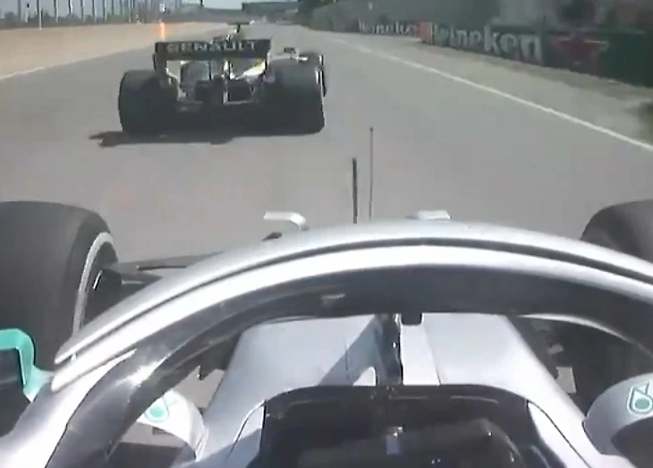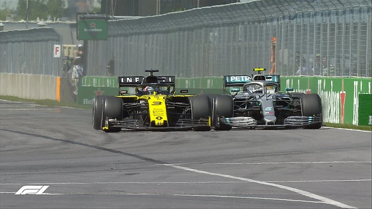 В результате Боттас поднял ногу с педали газа — ДРС закрылся и финн потерял преимущество в максимальной скорости. В повороте «Мерседес» оказался на неудобной внешней траектории и позади «Рено».