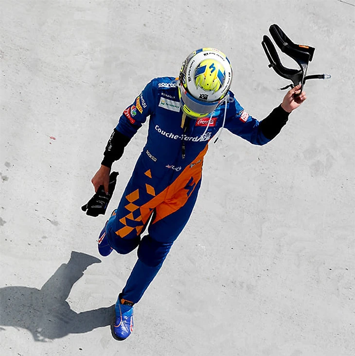 В гонке перфоманс англичанина продолжился: он сохранил позицию на старте, но ошибся в конце первого круга, заблокировав колеса в шпильке. Из-за этого вперед вырвался Макс Ферстаппен на «Ред Булл», но Ландо контратаковал на ближайшей же прямой и вырвал позицию обратно у превосходящего по уровню «Макларен» болида!