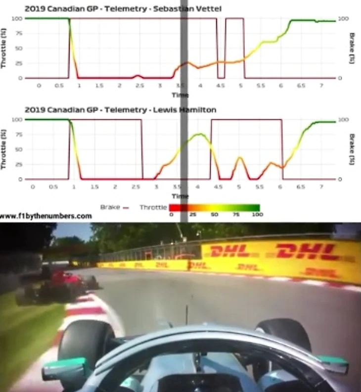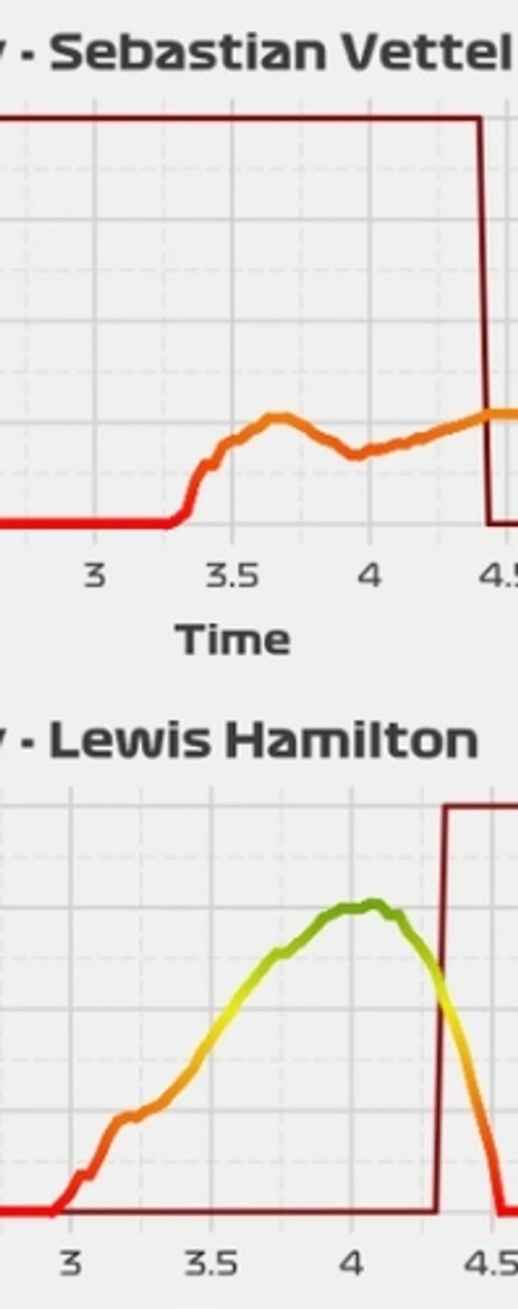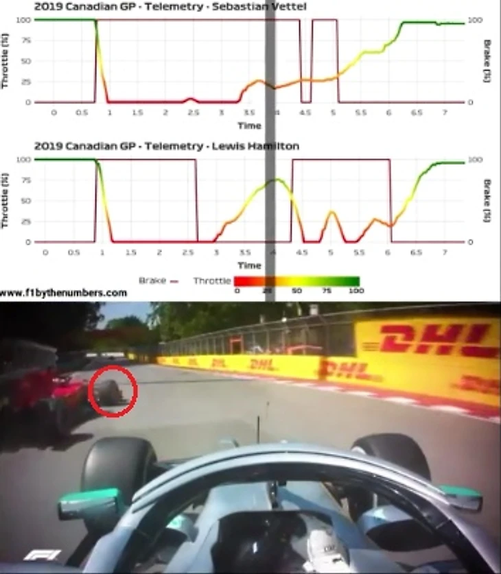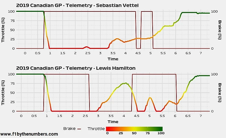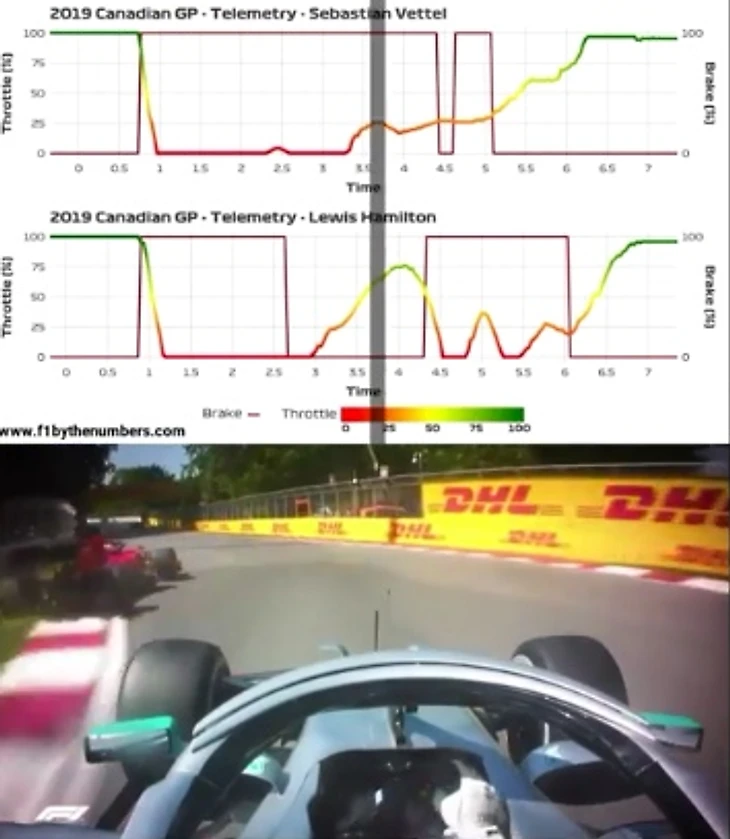 12 июня в сети появились данные по задействованию педалей газа и тормоза с болидов Феттеля и Хэмилтона — их собрал реддитор и блогер F1bythenumbers из информации, предоставляемой по подписке официальным приложением F1 App (данный функционал не работает на территории СНГ). Получился небольшой кусок телеметрии с 48-го круга.