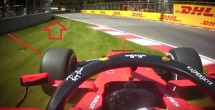 Феттель принял ряд мер и коррекций, из-за которых и оказался на траве. На второй секунде телеметрии видно, что он слегка подгазовывает, когда находится на газоне, но здесь нет ничего криминального.