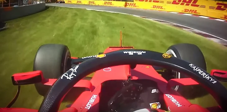 При чем тут Феттель? Просто при подобном резком разгоне с нажатием на педаль на задней и передней осях возникает большая разница в моменте. На асфальте шины «зацепляются» за поверхность, толкают машину и не дают ей развернуться, но на траве с нулевым сцеплением это очень рискованный маневр, не особо похожий на безопасное возвращение на трек.