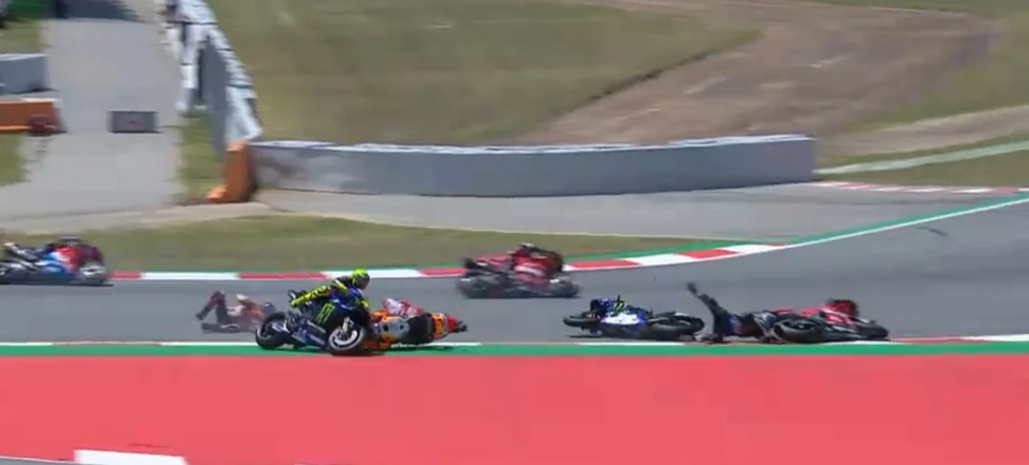 Гран-при Каталонии 2019 года закончился очередной победой бессменного доминатора MotoGP последних семи лет Марка Маркеса, первым подиумом в карьере Фабио Куартараро и огромным количеством сходов и падений — до финиша не добрались целых 11 пилотов. Самым ярким и драматичным стал завал в лидерской группе на первом круге: Маркес буквально за секунду потерял практически всех конкурентов благодаря напарнику Хорхе Лоренсо.