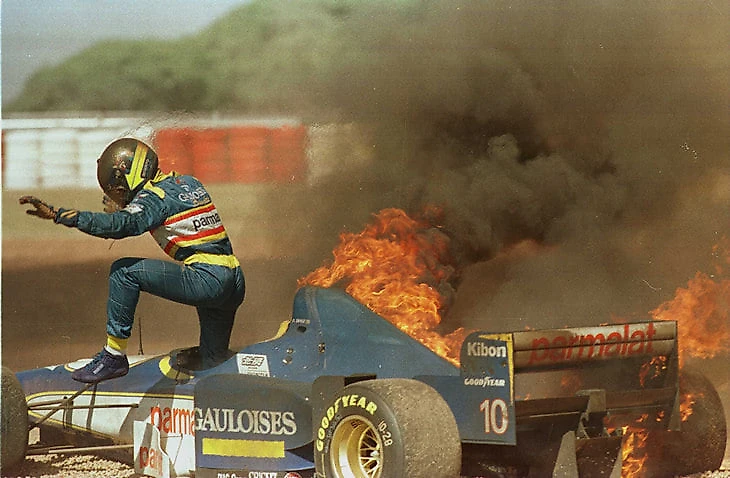 Гонщики совершенно не стеснялись спасаться бегством в подобных ситуациях. Педру Динис на Гран-при Аргентины 1996 года не стал исключением — в его «Лижье» заклинило топливный клапан, и в машине быстро стало горячо. Огонь перекинулся и на бразильца, но ему удалось быстро убежать и отделаться только парой легких ожогов.