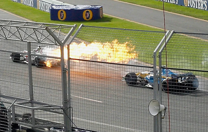 Кажется, еще чуть-чуть — и пожар на «Просте» Ярно Трулли во время одной из практик Гран-при Италии 1997 года можно было бы увидеть даже в космосе. А виновата всего лишь небольшая утечка масла.