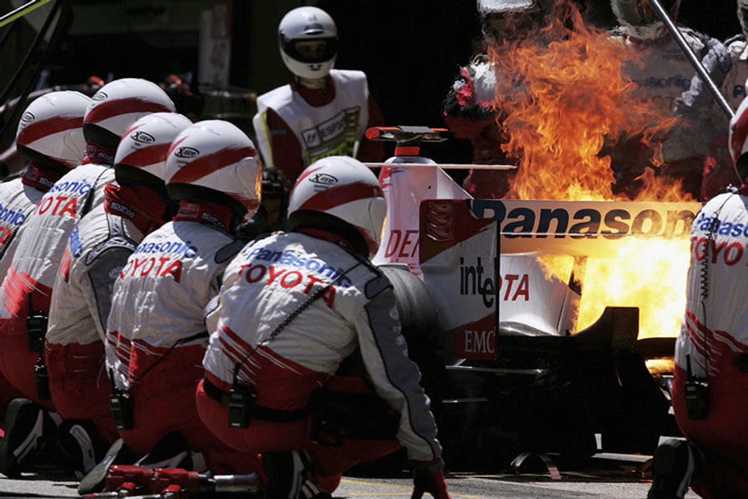 И снова несчастный Трулли, но уже на Гран-при Испании 2005 года в «Тойоте». Теперь ему не повезло с криворукими механиками на дозаправке.