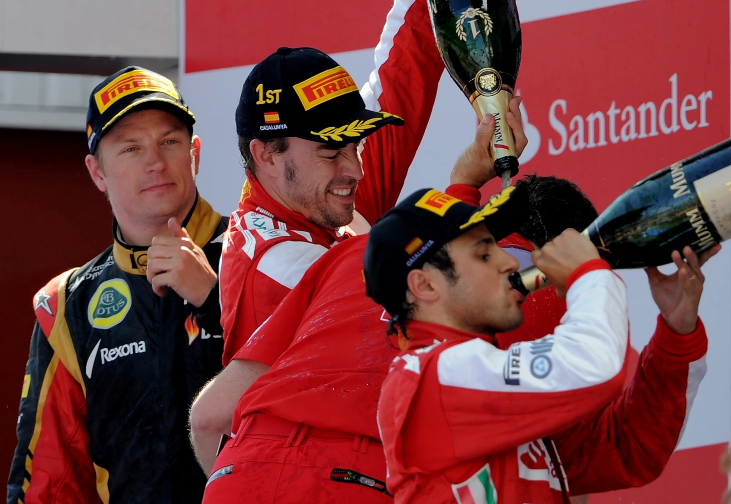 2010: Феррари выбрала Массу, не Райкконена. Судьба вновь была благосклонна к бразильцу: в 2006 году после объявления контракта с Кими Михаэль Шумахер спас карьеру Фелипе в Скудерии, уйдя в отставку, а теперь был разорван контракт с Кими, и оставлен только-только восстановившийся после травмы бразилец. Все шло отлично в первые этапы сезона: интересная борьба трёх команд, Фелипе Масса даже лидировал в личном зачете, но потом несколько неудач, соперники ушли вперёд, пропуск Алонсо на Гран-При Германии, и вице-чемпион был потерян. Алонсо выиграл 15 квалификаций из 19, уступил лишь в двух гонках из 16 с обоюдными финишами, набрал 252 очка, на 108 больше, чем у Массы, едва не став трёхкратными чемпионом мира.