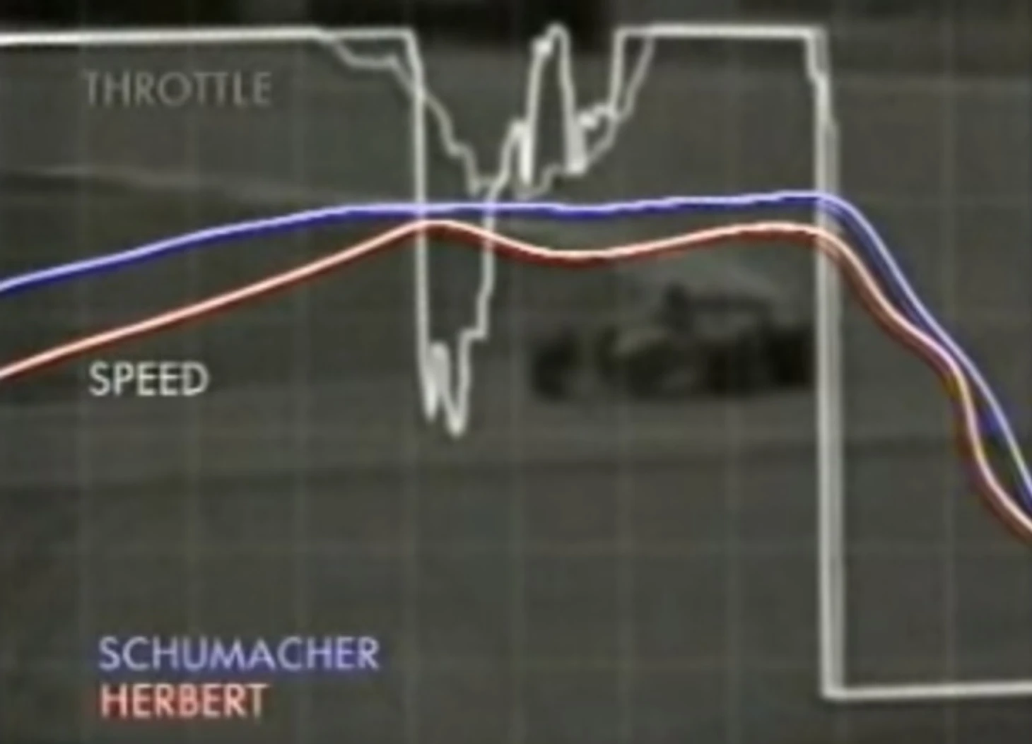 «Если бы каждый пилот проехал в белой машине и белом шлеме, мы бы все равно узнали Михаэля Шумахера по его технике, – объяснил бывший гонщик «Ф-1» Джонатан Палмер. – Правда, это было бы нелегко — давайте лучше взглянем на данные по нажатию его педалей газа и тормоза, а также рулению. У нас есть телеметрия с квалификации на Гран-при Великобритании и с машины Шумахера, и с машины Херберта.