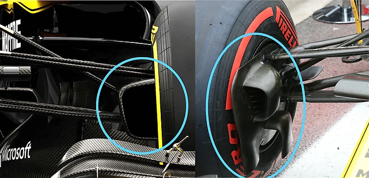 Есть только один способ не спалить карбоновые детали и не сойти из-за отказал всего через пару кругов: придумать эффективное охлаждение. Современные болиды обладают такой системой: она забирает воздух с фронтальной части машины и распространяет его в отверстия в дисках, снижая температуру изнутри и передавая ее шинам для поддержания в них рабочих цифр.