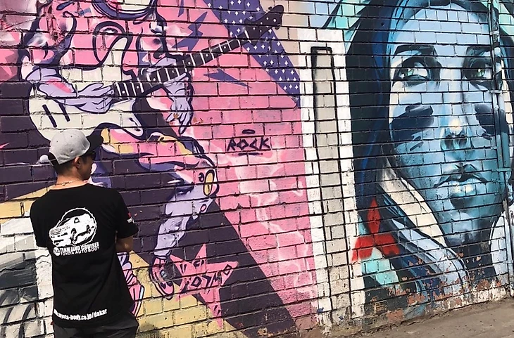 А вот японский чемпион «Дакара» и вице-чемпион «Шелкового пути» в классе T2 Акира Миура нашел немного более художественного стрит-арта.